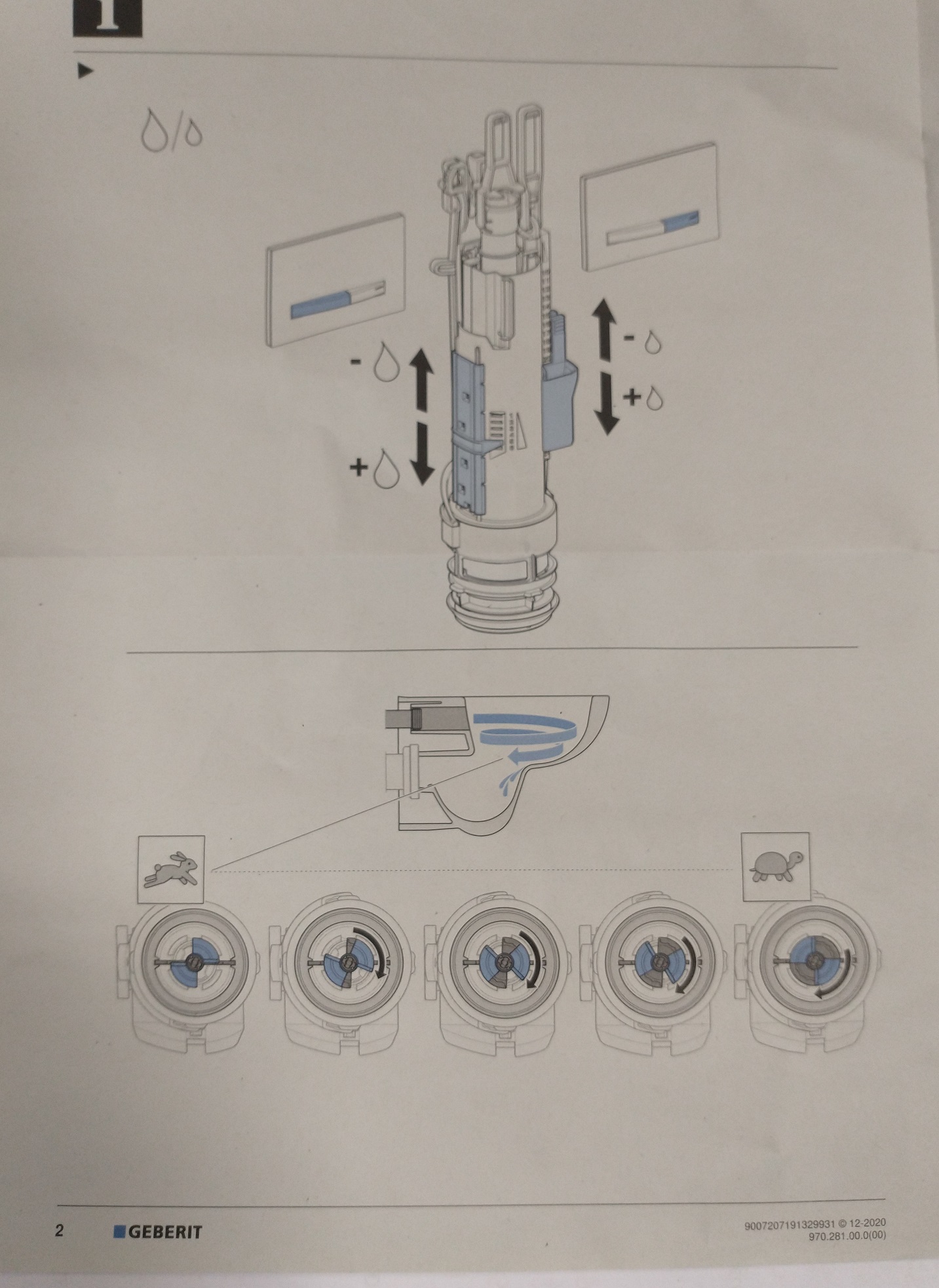 Nowy typ zaworu spustowego pasujący do stelaży Geberit. Charakteryzuje się lepszą i łatwiejszą regulacja ustawienia ilości małego i dużego spłukiwania oras możliwością regulacji wydajności spłukiwania poprzez regulację przepustnicy ( co może być istotne przy niektórych modelach misek bezrantowych).